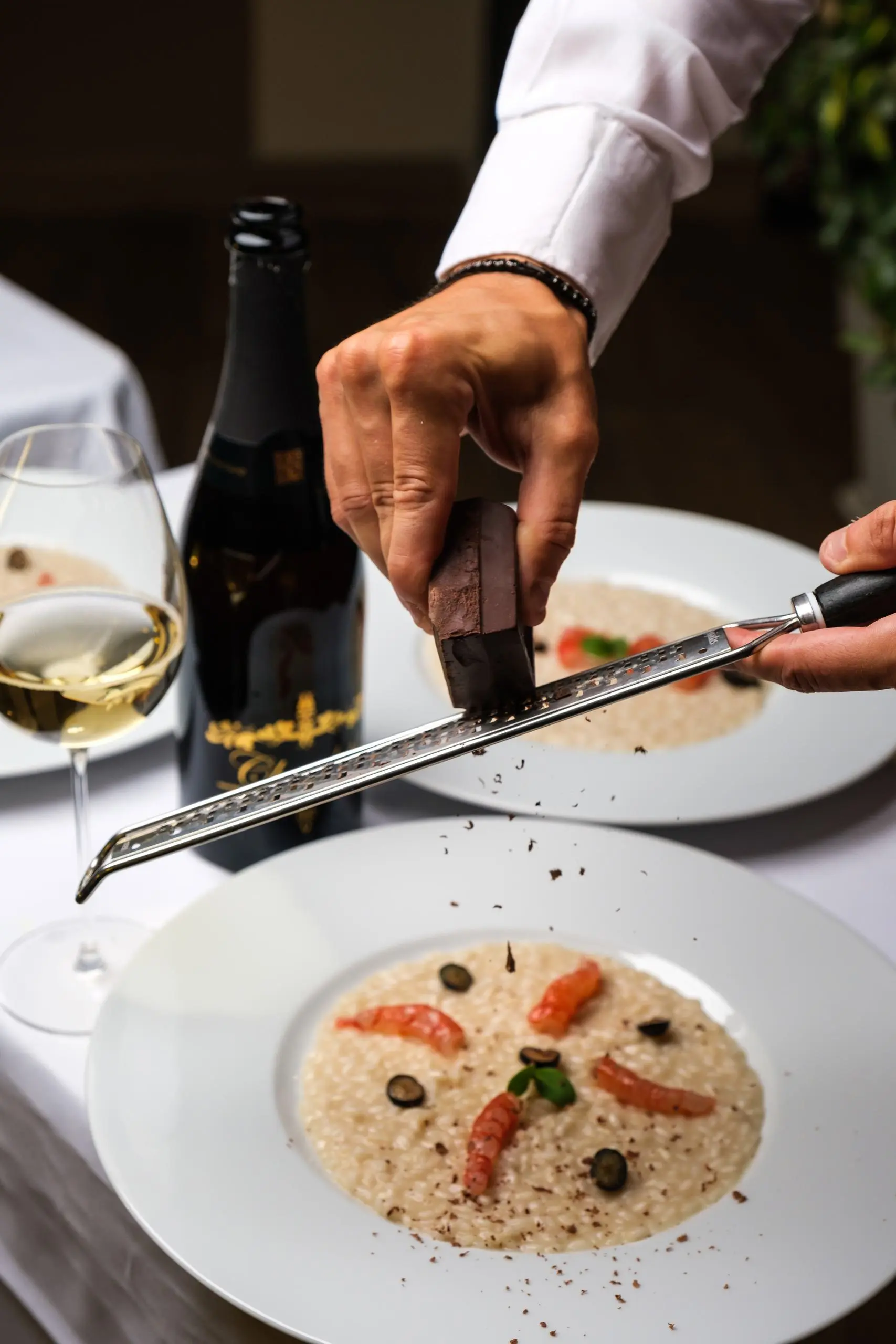 - Rohschinken, Carpaccio, Gourmetsalat, Räucherlachs, Austern, Sardellen, roher Fisch, Scampi, Foie Gras, Trüffel, Risotti